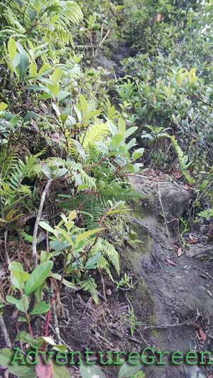 The path went down and up again and was slippery. The trees were too small sometimes, and if there was a slip then it would be a plunge straight down hundreds of meters below. It was more or less a vertical mountain cliff. The wind blew sideways and blurred my eyesight after a while. It would take us 2 hours to cross this treacherous part if we could make it…