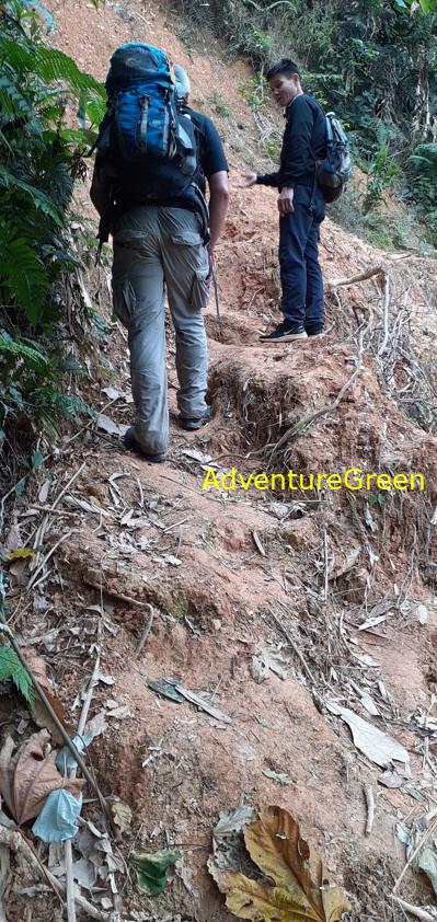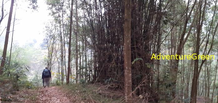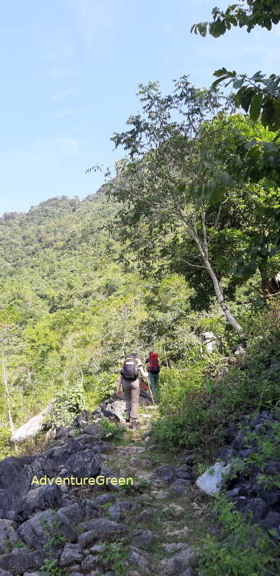 We leave Hang Village after that. The trek is along a scenic stream with forested mountains all around. The gradients are steep sometimes, but you don't normally feel tired, thanks to the fresh natural beauty and the joyful music played by running water down the streams.